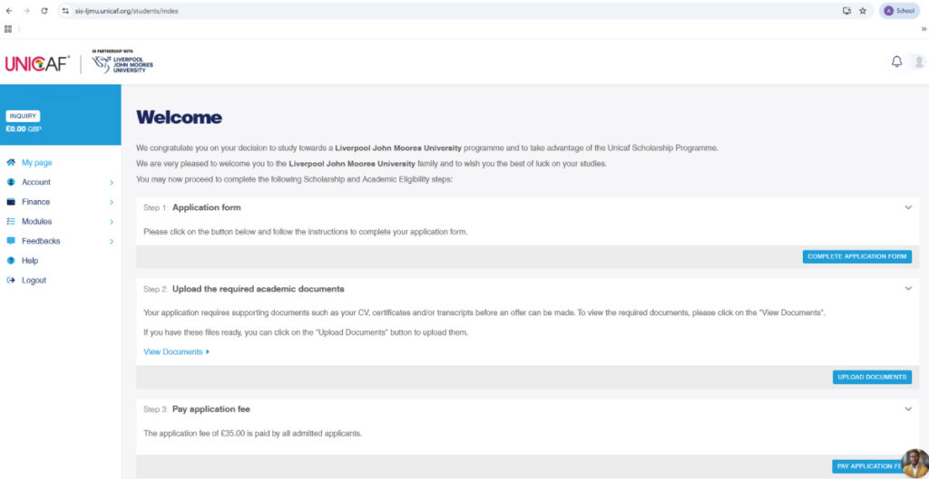 The first step is to fill out the online application form on the Unicaf website. This form collects basic personal information, academic history, and the programme you wish to study. It’s important to provide accurate details, as these form the foundation of your scholarship assessment. Once submitted, your application enters the system for review by Unicaf’s team.